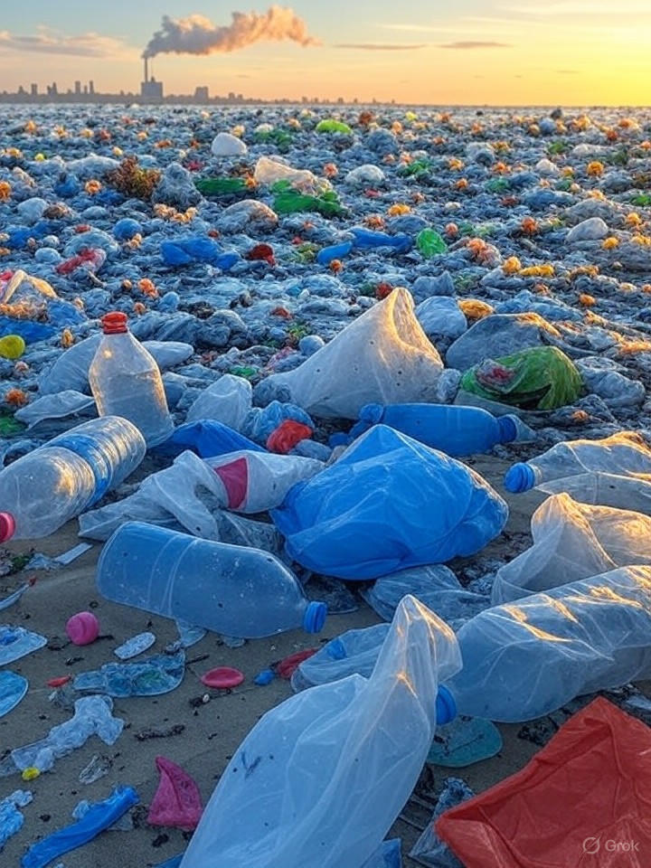 A poluição plástica já atinge 8 bilhões de toneladas em todo o planeta, do topo do Monte Everest às fossas oceânicas mais profundas, com menos de 10% sendo reciclado. O relatório enfatiza que os plásticos ameaçam em todas as etapas, desde a extração de combustíveis fósseis – que respondem por mais de 98% da matéria-prima – até a produção, uso e descarte, gerando poluição do ar, exposição a químicos tóxicos e infiltração de microplásticos no corpo humano. A produção emite o equivalente a 2 bilhões de toneladas de CO2 por ano, superando as emissões da Rússia, e mais da metade dos resíduos plásticos não gerenciados é queimada ao ar livre, agravando a poluição atmosférica.