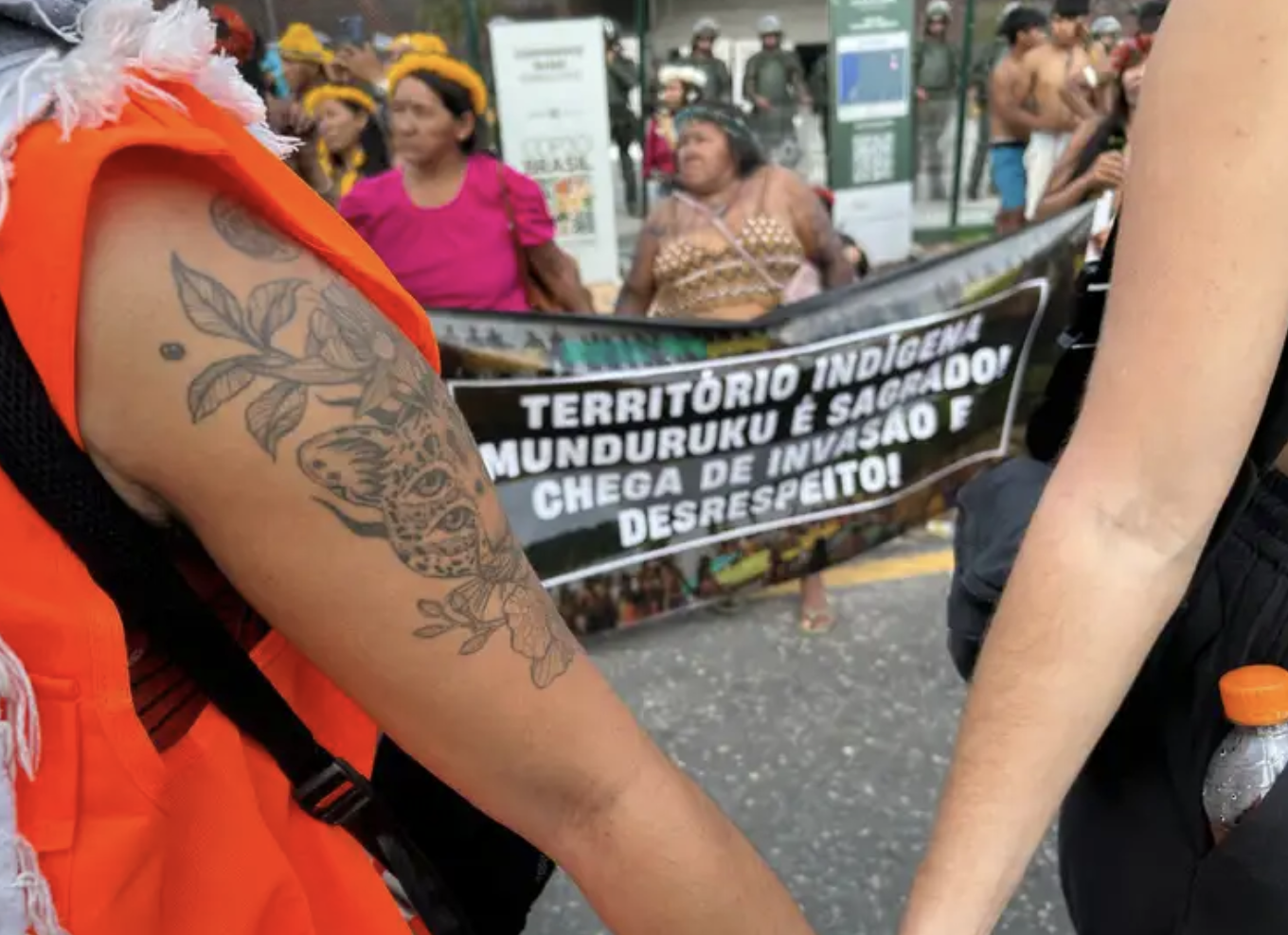 Os manifestantes criticam as negociações climáticas internacionais por tratarem as matas nativas como meros ativos de crédito de carbono, priorizando interesses de países e empresas destruidoras. Eles também cobram a retirada imediata de invasores das terras indígenas e o fim do Marco Temporal, lei que restringe os direitos territoriais dos povos originários às áreas ocupadas em 1988, data da promulgação da Constituição Federal. Uma das lideranças expressou frustração: “Deixa a população sem educação, sem saúde. E cadê a Justiça pra nós, pra defender aqui? A COP não fala por nós”.